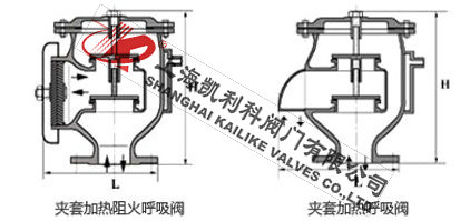 JAV-I保溫呼吸閥是新型改進型呼吸閥,集合呼吸閥與儲罐阻火器的雙重作用(訂貨時需要指出帶阻火功能),針對于易在一定溫度下流體變相(凝固)的介質使用。在呼吸閥外層設置保溫層以蒸汽或導熱油等流體充實夾層確保閥內介質溫度,來保證介質不受溫度所影響所變相。根據國家標準《石油化工企業設計防火規范》(GB50160-92)之規定:“儲存甲、乙類液體的固定式頂罐,應設阻火器和呼吸閥”。呼吸閥內設有靜電保護裝置,使得該閥時刻與罐體保持同等電位。