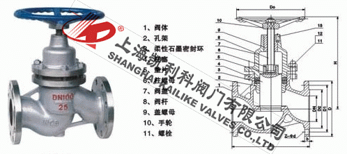 UJ41H柱塞截止閥是由閥體、閥蓋、閥桿,柱塞,導向、密封環(huán)、手輪等零件組成。當手輪旋轉時,通過閥桿帶動柱塞在導向套中上、下往復運動,使柱塞端部斜錐面與閥座錐面完成閥門的開啟與關閉功能。